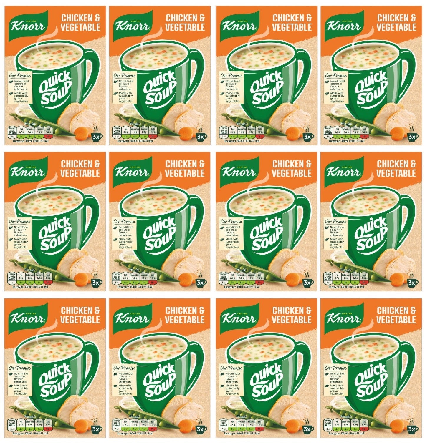 12 x Knorr Quick Soup Chicken & Vegetable 3's 42G