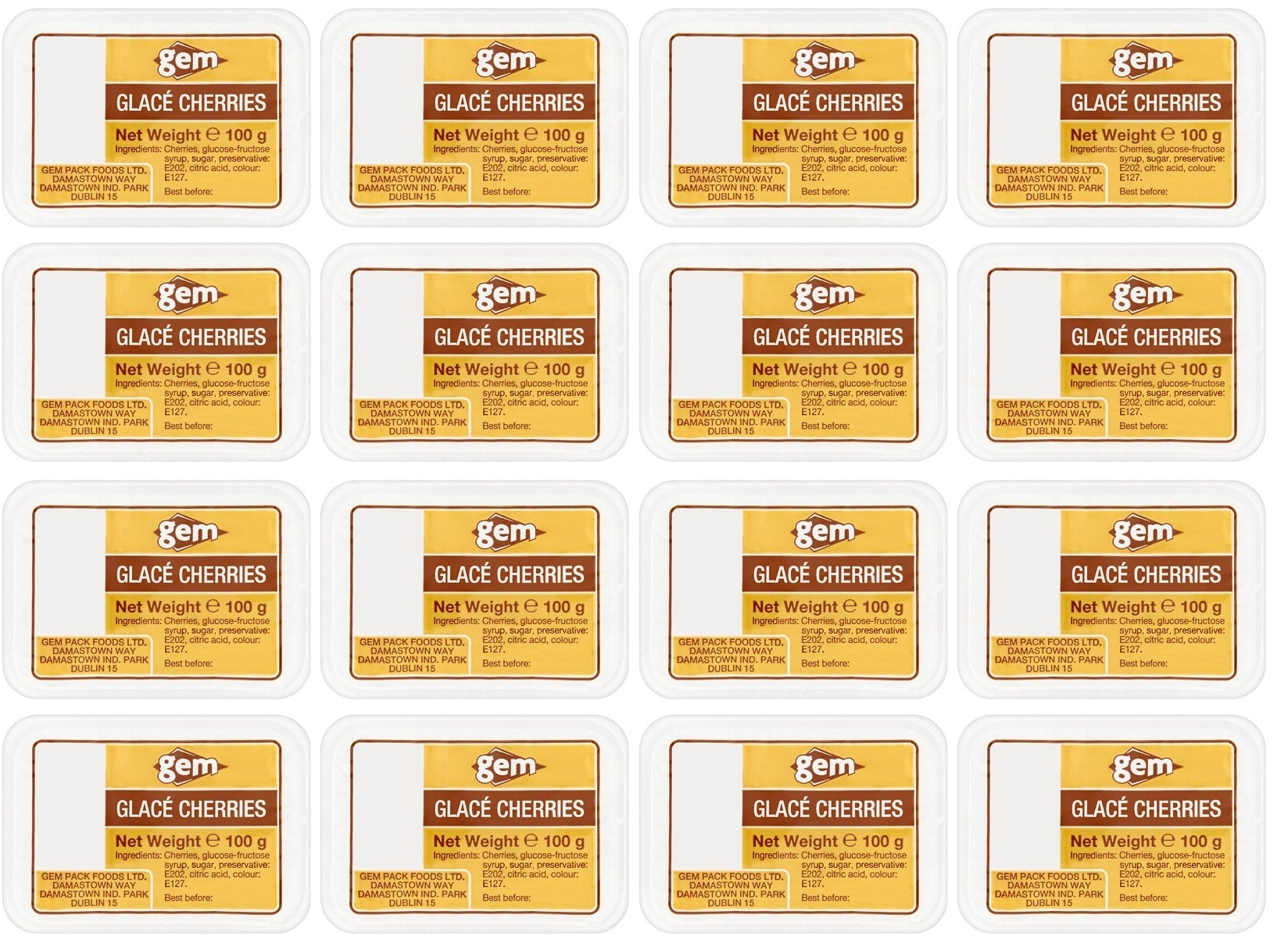 16 x Gem Glacé Cherries 100G