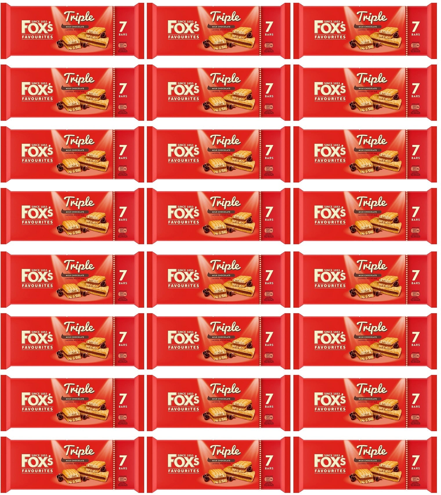 24 x Fox's Triple Layered Biscuit Bar 7Pk